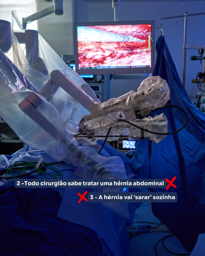 • A hérnia não se cura sozinha e o tratamento deve ser feito, preferencialmente, por cirurgiões que se dedicam à estudar esse defeito da parede abdominal.