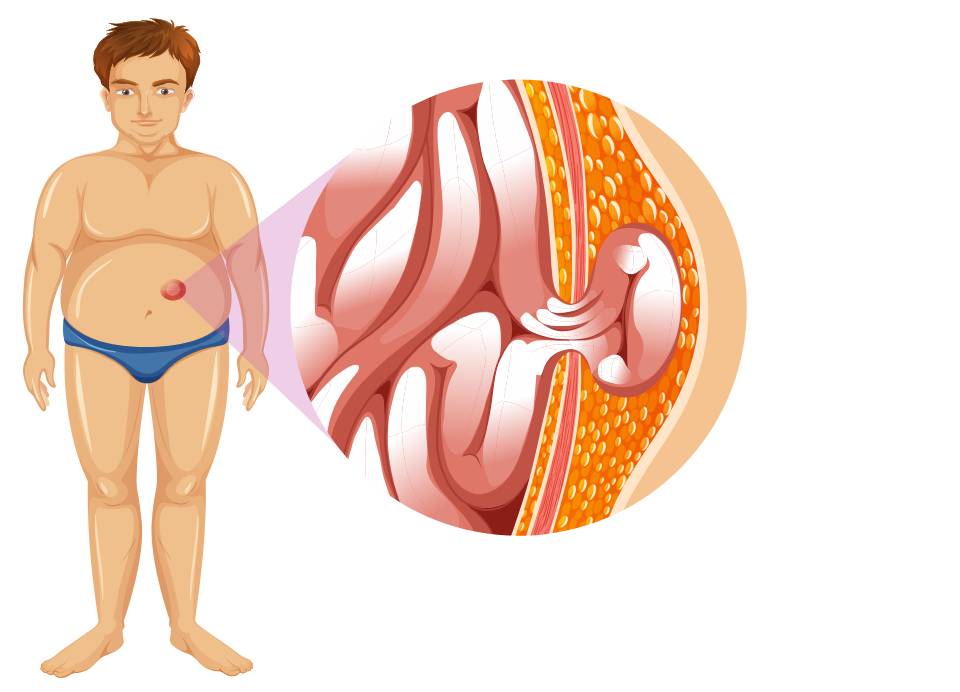 Essa hérnia acontece na chamada linha alba, pouco acima do umbigo, devido a passagem de vasos sanguíneos que geram fraqueza na musculatura. Na maioria das vezes, essas hérnias apresentam tamanho pequeno e são formadas apenas por gordura, podendo ser confundidas com lipomas.